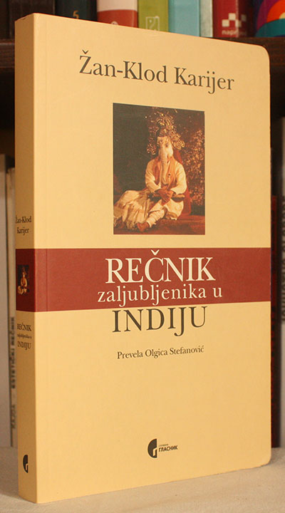 „Rečnik zaljubljenika u Indiju“ Žan-Kloda Karijera je lična, esejistička knjiga napisana u formi rečnika, u kojoj autor kroz kratke tekstove po pojmovima (ljudi, običaji, mitovi, religije, istorijski događaji) istražuje Indiju kakvu je doživeo i zavoleo. To nije klasičan vodič ni enciklopedija, već subjektivno putovanje kroz indijsku kulturu, duhovnost i svakodnevni život, ispunjeno znatiželjom, humorom i dubokim poštovanjem prema složenosti i protivrečnostima Indije.