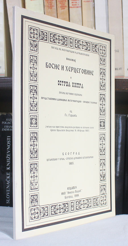 Izdavač: IKP 'Nikola Pašić', Beograd 1998; reprint izd. iz 1893.