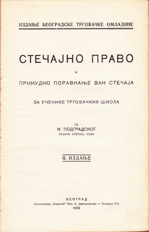 Izdavač: Beogradska trgovačka omladina, Beograd 1930;