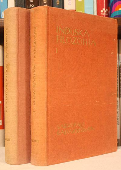 "Indijska filozofija I–II" predstavlja kapitalno delo o razvoju indijske filozofske misli od najranijih vremena. U prvoj knjizi autor obrađuje vedski period, Upanišade i formiranje osnovnih metafizičkih i etičkih ideja, dok se drugi tom bavi sistematskim školama indijske filozofije, kao što su hinduističke, budističke i džainističke tradicije. Radakrišnan kombinuje erudiciju, istorijski pristup i filozofsku analizu, nastojeći da indijsku filozofiju prikaže kao ravnopravni deo svetske filozofske baštine.