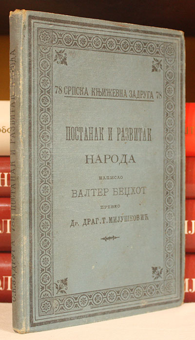 Valter Bedžhot (Walter Bagehot) bio je engleski ekonomista, sociolog i politički teoretičar iz 19. veka. U svojim delima često je analizirao društvene i političke fenomene, uključujući i razvoj naroda i društava. Tema „Postanak i razvitak naroda“ kod Bedžhota može se sagledati kroz njegove analize evolucije društvenih institucija, ekonomskih odnosa i političkih sistema, kao i kroz proučavanje načina na koji se društva razvijaju i prilagođavaju tokom vremena. Bedžhot je naglašavao važnost stabilnih političkih institucija i ekonomskog prosperiteta kao ključnih faktora u razvoju naroda. Takođe je ukazivao na značaj balansiranja između tradicije i inovacije u društvenim sistemima.