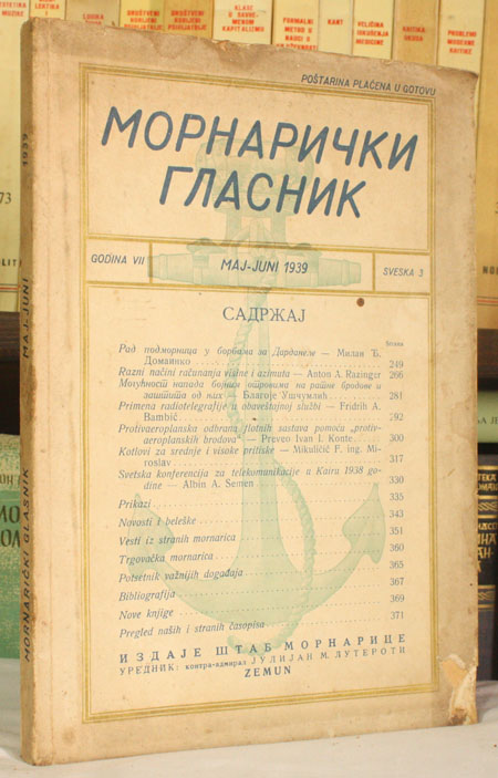 Izdavač: Štab mornarice, Zemun 1939; godina VII: sveska 3