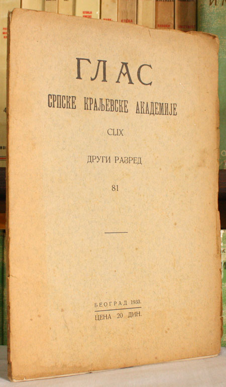 Izdavač: Srpska kraljevska akademija, Beograd 1933; Drugi razred: br. 81
