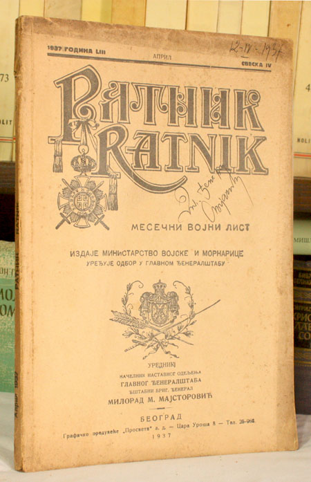 Izdavač: Ministarstvo vojske i mornarice, Beograd 1937; godina LIII: sveska IV