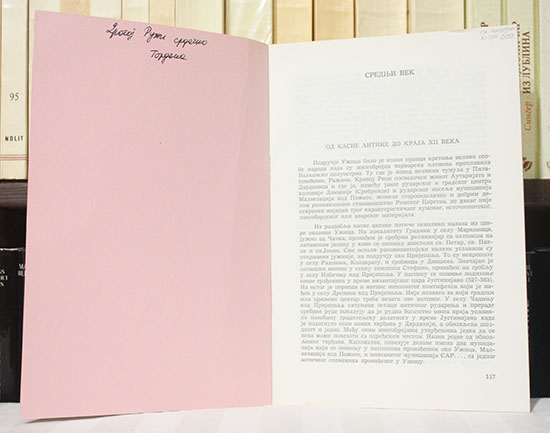 Separat iz Istorije Titovog Užica, sa posvetom autora istoričarki Ruži Ćuk
