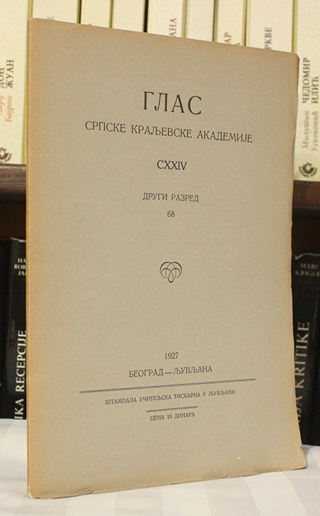 Izdavač: Srpska kraljevska akademija, Beograd, Ljubljana 1927; Drugi razred: knj. 68