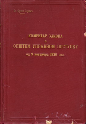 Komentar zakona o opštem upravnom postupku od 9. novembra 1930. god.